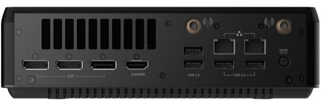 外部I/O上,EN275060TC正面提供2个雷电4、1个USB-A10Gbps、1个二合一音频插孔;反面则包含3个DP2.1b、1个HDMI2.1b、2个2.5GbERJ45、4个USB-A10Gbps和一对Wi-Fi天线插孔。