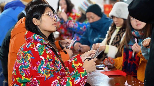 冷极村游客体验剪窗花