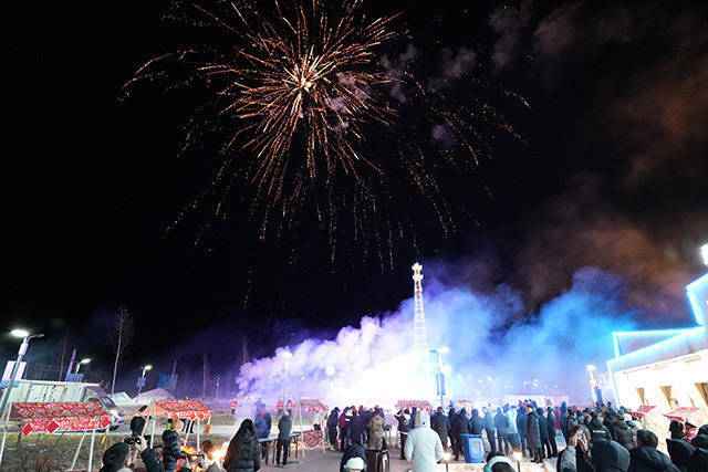 冰雪季冷极村游客看烟花